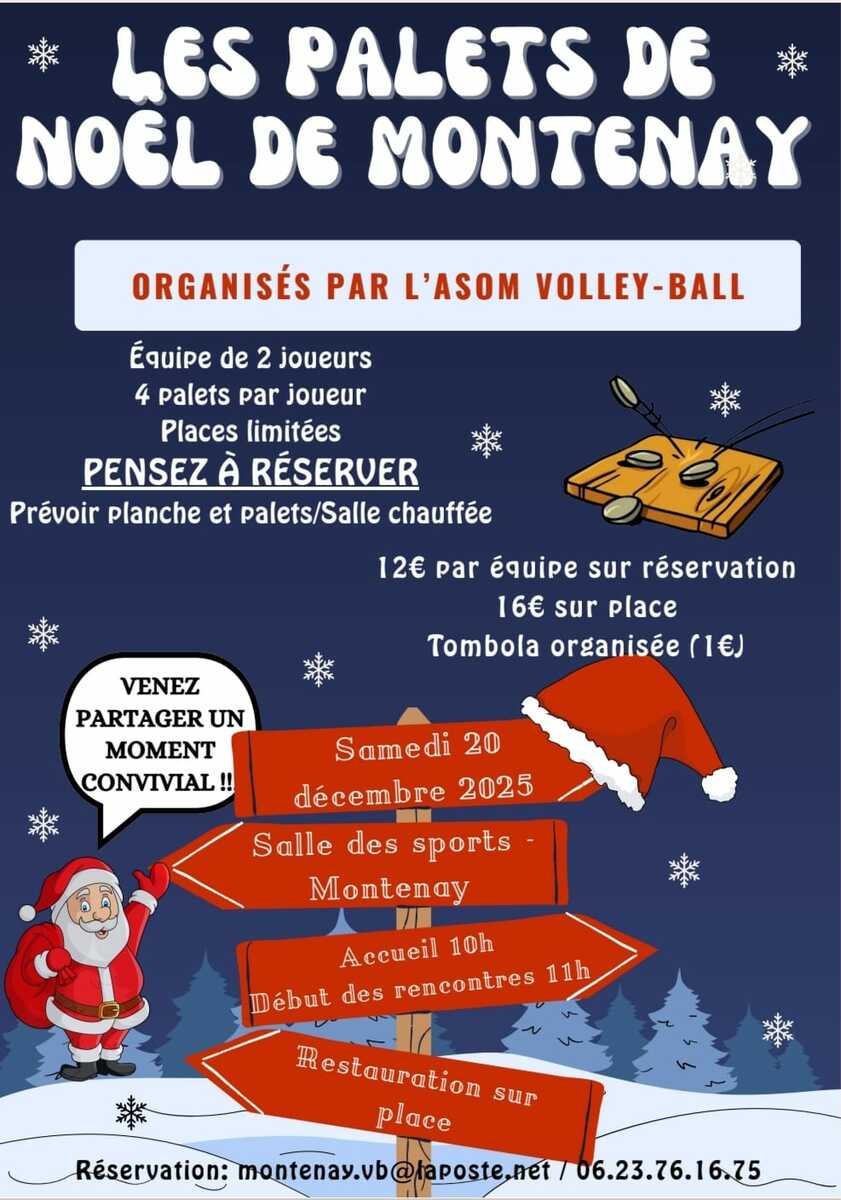 L'ASOM Montenay Section Volley-ball organise le 20 décembre à partir de 10 h son tournoi : "les palets de Noël", le tournoi aura lieu au sein de la salle omnisports de Montenay et est organisé dans le but de récolter des fonds afin de procéder au renouvellement de son matériel.